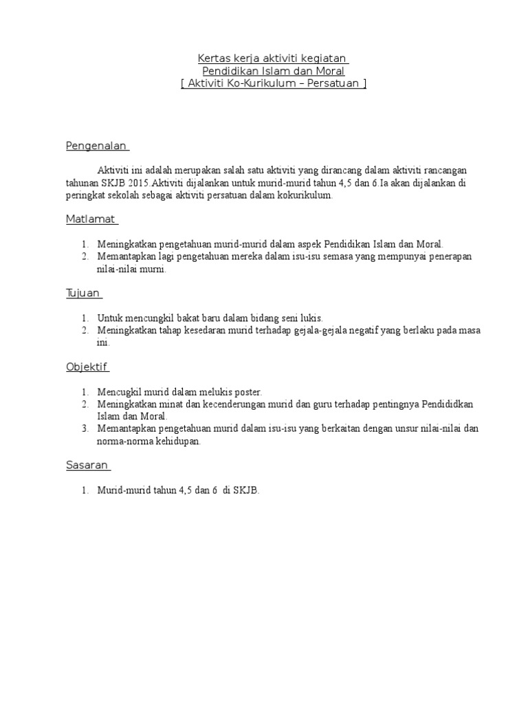 Doc Rancangan Aktiviti Tahunan Kelab Rukunegara 2018 Norhaini Nadi Academia Edu from 0.academia-photos.com Paparan video aktiviti bpi kpm yang telah diadakan sepanjang bulan september hingga disember 2018 ini telah ditayangkan sempena perhimpunan bulanan bahagian. Dalam adagium ushuliyah dinyatakan bahwa : .::ppi upsi berhasrat menjadi salah satu wadah penting. Atau yang ditetapkan oleh character counts di amerika seperti dapat dipercaya. Amanah beladiri di pendidikan islam. Pendidikan islam berpadu dalam pendidikan ruhiyah, fikriyah (pemahaman/pemikiran) dan amaliyah (aktivitas). Tujuan ialah suatu yang diharapkan tercapai setelah sesuatu usaha atau kegiatan selesai. Mohd shahrin b ahmad 5.