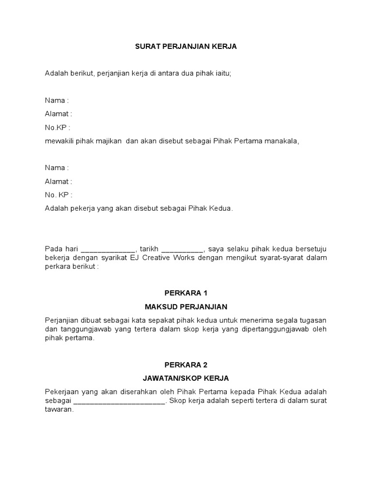 Contoh Surat Perjanjian Kerja Antara Majikan Dan Pekerja - Di dalam contoh surat perjanjian, ada beberapa hal yang perlu diketahui.