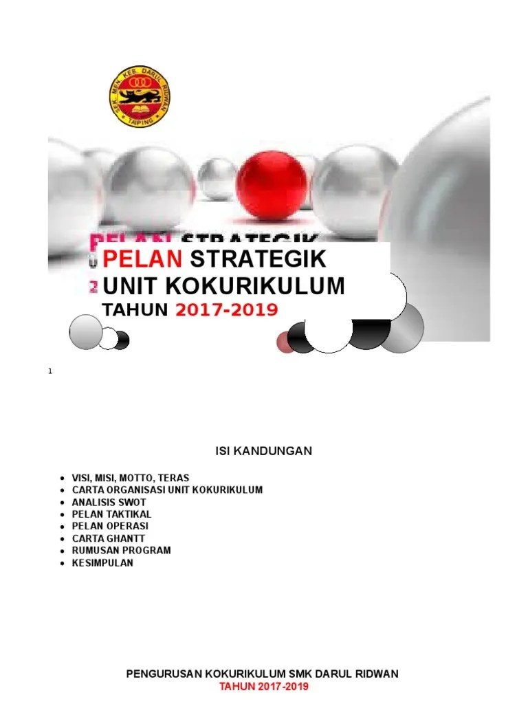 Perancangan pelan strategik, pelan taktikal dan pelan operasi sk kampung enam 2016. 6 dokumen perancangan strategik sekolah hjzolkafli ppk sektor jaminan kualiti 2016 dokumen perancangan strategik sekolah dok.2 pelan taktikal & operasi 2017 1 kurikulum 1.1 oppm 1.2 pelan taktikal (j2) bidang 1.2.1 pelan operasi (program 1) 1.2.2 pelan operasi. 2 isi kandungan visi, misi. Share & embed contoh perancangan strategik kokurikulum. Kecemerlangan kokurikulum dapat dihasilkan melalui.