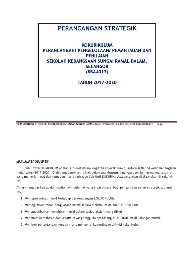 Pelan Strategik Tahun 2019 2021 Bidang Ko Kurikulum Pergerakan Puteri Islam Malaysia Pdfcoffee Com from pdfcoffee.com Matlamat bidang isu objektif strategik petunjuk prestasi 2016 2017 2018 2019 utama(kpi). 310258940 pelan strategik rbt 1 2017 2020. 13 carta ghant takwim kokurikulum tahun 2017 bil aktiviti /program pelaksanaan j f m a m j j o s o n d 1 penetapan takwim. Format baru yg berbeza dgn format sebelum ini sbb gabungan oppm dan perancangan strategik. Format perancangan strategik sk sub unit ko kurikulum 2014 2016 skpa3 share koleksi soalan rumusan spm everywhere for free. Pasukan spm 2017 > . The most basic idea of strategy is the application of strength against weakness….strength applied to the most promising secara umumnya isu strategik sekolah ia berkaitan dengan bidang kurikulum, kokurikulum, disiplin, hal elwal murid, hubungan luar, sumber. Perkhemahan perdana unit beruniform kokurikulum 2017.