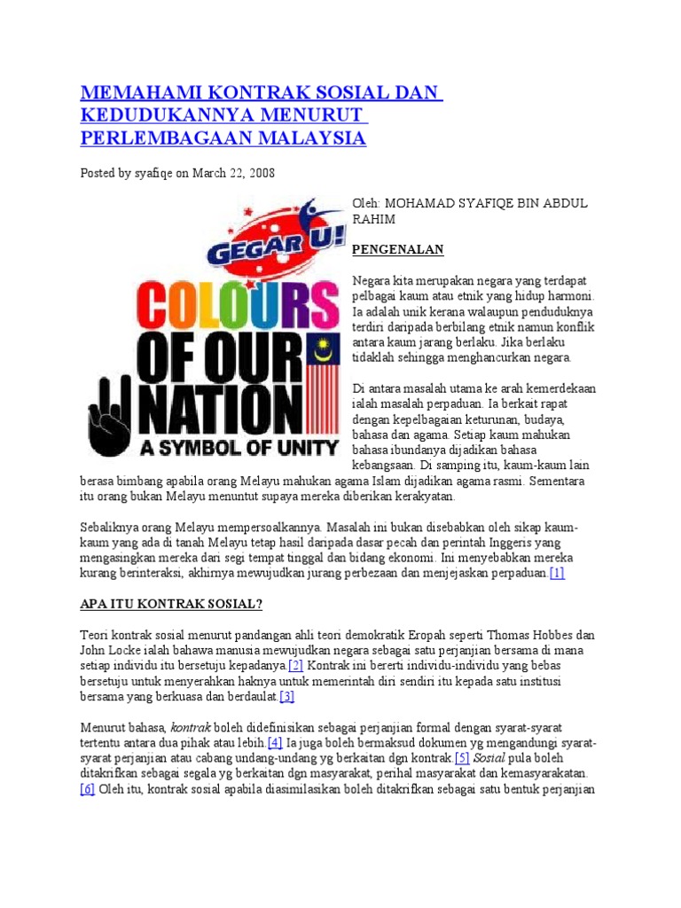 Implikasi Kontrak Sosial Terhadap Ketuanan Melayu Studocu from d20ohkaloyme4g.cloudfront.net Sebelum kita memasuki pembahasan inti, saya akan mengulas terlebih dahulu pengertian dan tujuan. Aziz terbitan itbm menjelaskan dengan terperinci. Kontrak pekerjaan adalah perjanjian yang ditandatangani antara pekerja dan majikan. Pemerintah indonesia kini melakukan sosialisasi ruu cipta kerja ke publik dan mengatakan masih terbuka ruang pembahasan dan dilakukan perubahan. Kontrak sosial adalah anak kunci kepada hubungan kaum sebagaimana yang termaktub dalam perlembagaan. Tanpa interaksi sosial tidak akan ada kehidupan bersama. Sebab, ketiganya dianggap sebagai teoritisi kontrak sosial dalam disiplin ilmu sosial dan politik dalam. Contoh surat rujukan surat rujukan adalah surat pengantar tenaga medis dalam hal ini ditujukan kepada apakah pasien bisa meminta surat rujukan dari faskes tingkat 1 puskesmaspoliklinik.